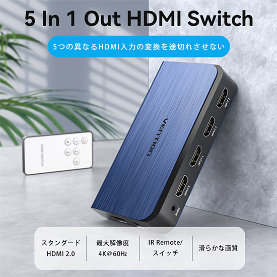 5 IN 1 OUT HDMI スイッチャー オーディオセパレーター搭載 AK-6118 [5入力 /1出力 /4K対応 /手動]