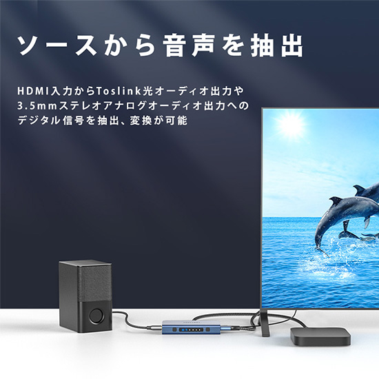 インターフェイス:HDMI-Aメス/3.5mm TRSメス/Toslink光メス/DC電源