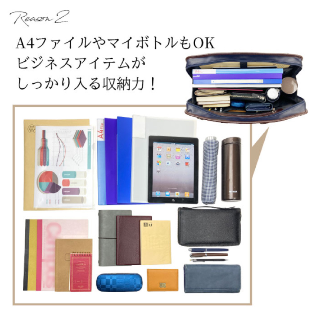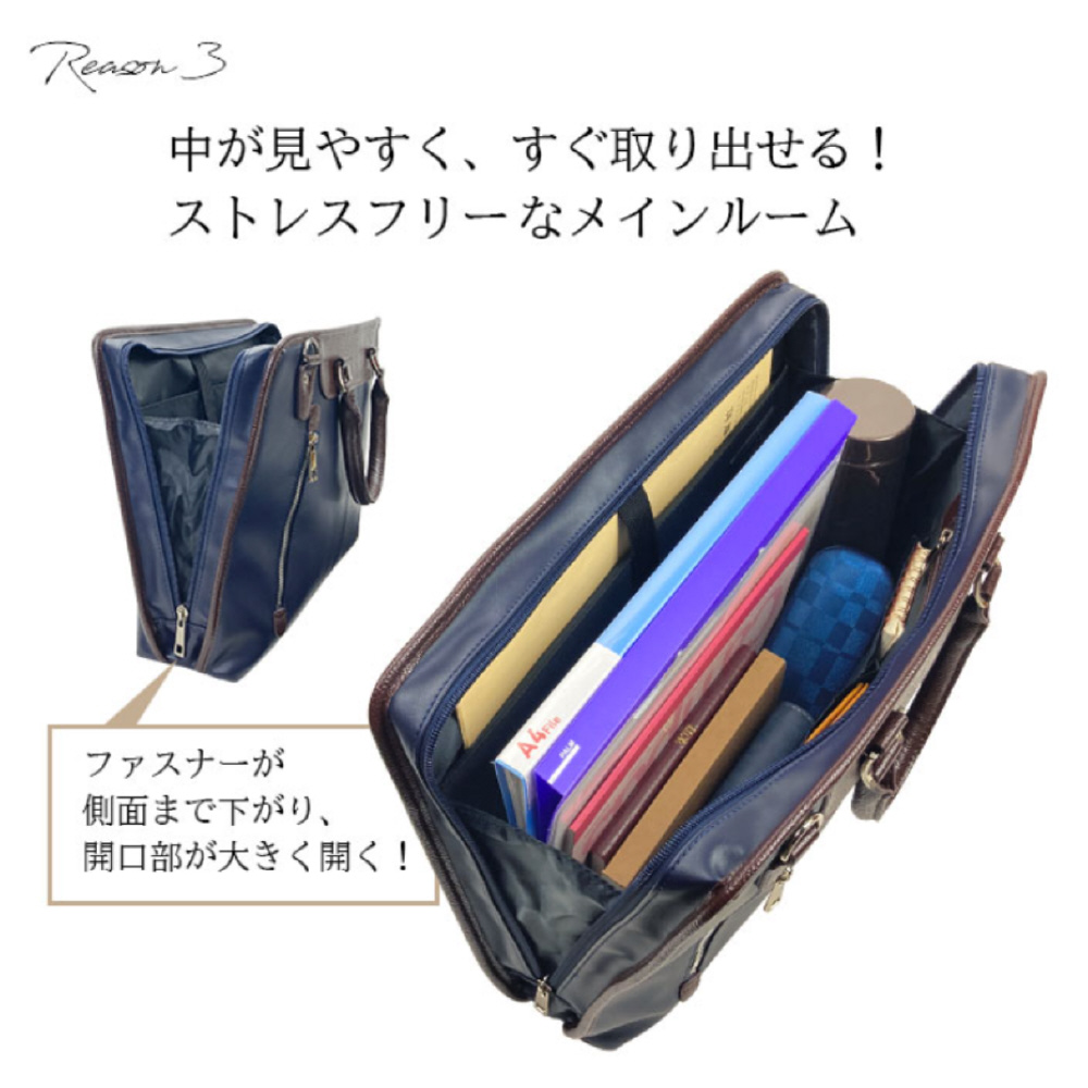 通勤、営業、リクルート、就活など、あらゆるビジネスシーンにフィット。フレッシャーズからベテラン社員まで幅広い年代におすすめできる、洗練されたデザインと高い実用性を兼ね備えたバッグです。