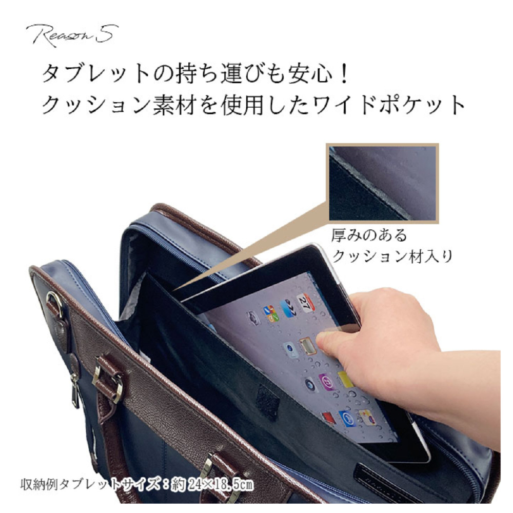 タブレット対応&B4サイズ収納:ビジネスツールも大きな書類も余裕で収納可能。