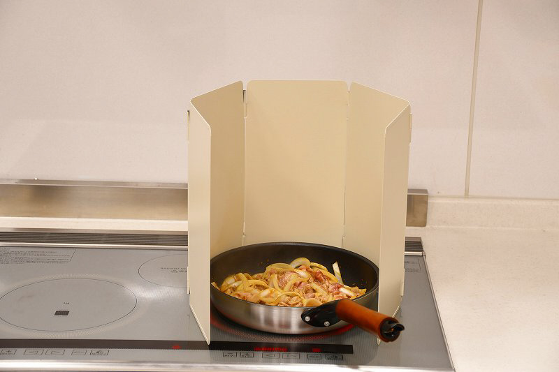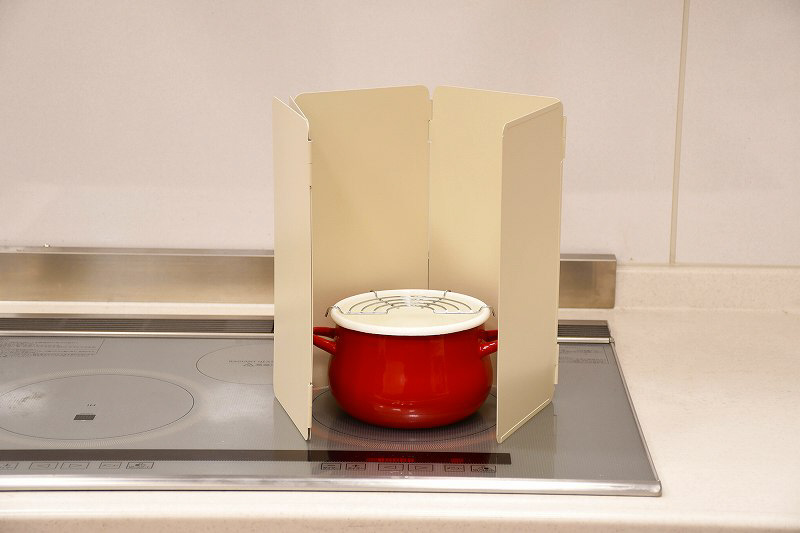 レンジまわりの油はねをパネルで囲みしっかりガードコンパクトにたためる。使い終わったらたたんでコンパクト収納。調理中に鍋やフライパンがパネルに当たらないよう使用してください。パネルは広げすぎないでください。転倒の原因になります。食器洗い乾燥機には使用しないでください。