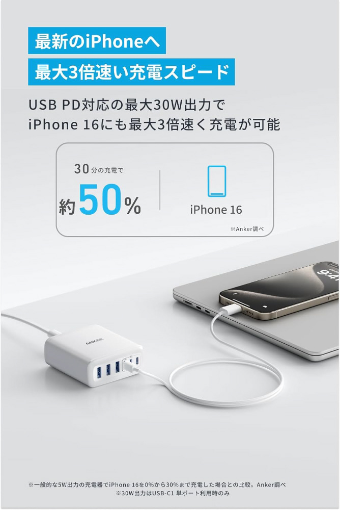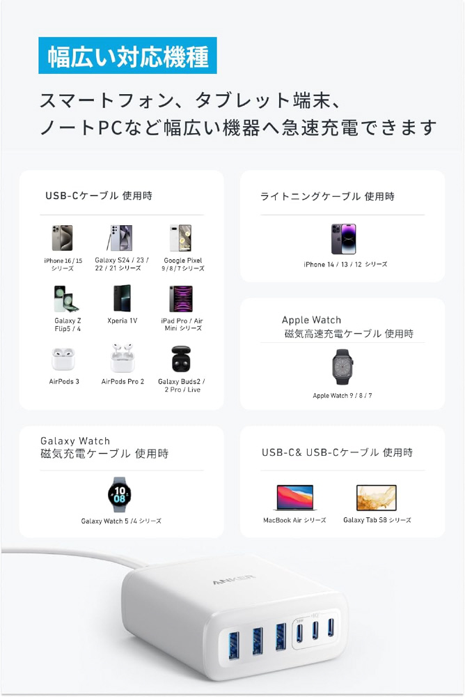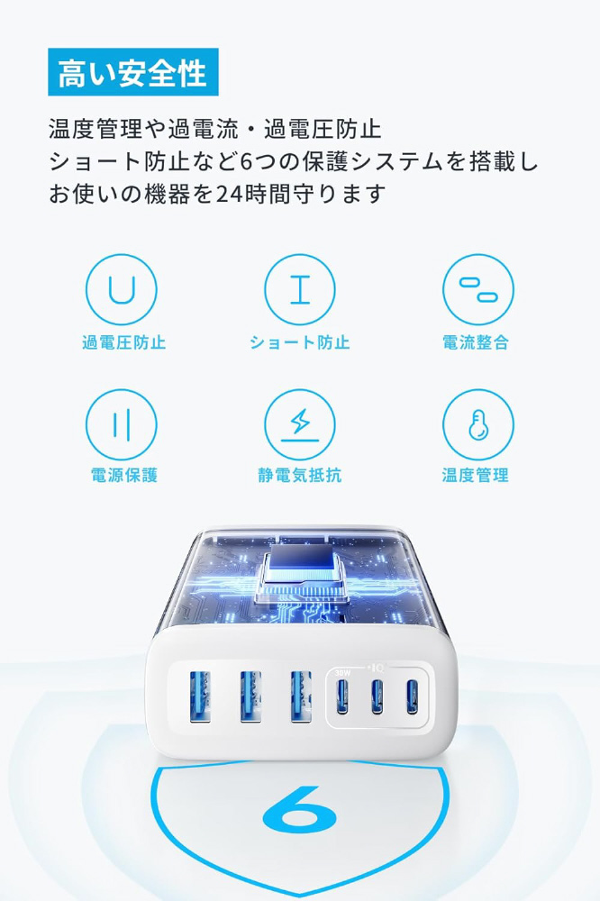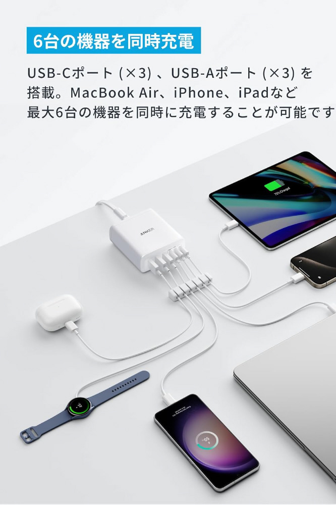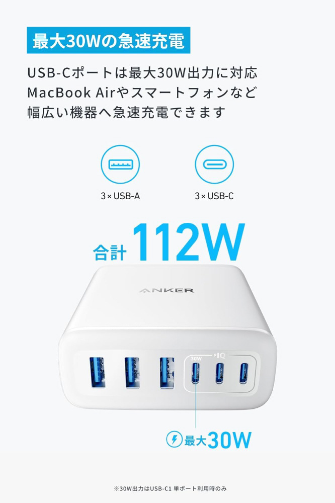 Anker Charger (112W、 6 Ports、 GaN) A2154521 A2154521 [6ポート /USB Power Delivery対応]
