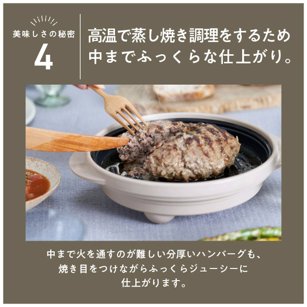 高い蓄熱性があり、調理後そのまま食器の代わりとして食卓に出すことができるため、温かい状態の料理を楽しむことができます。