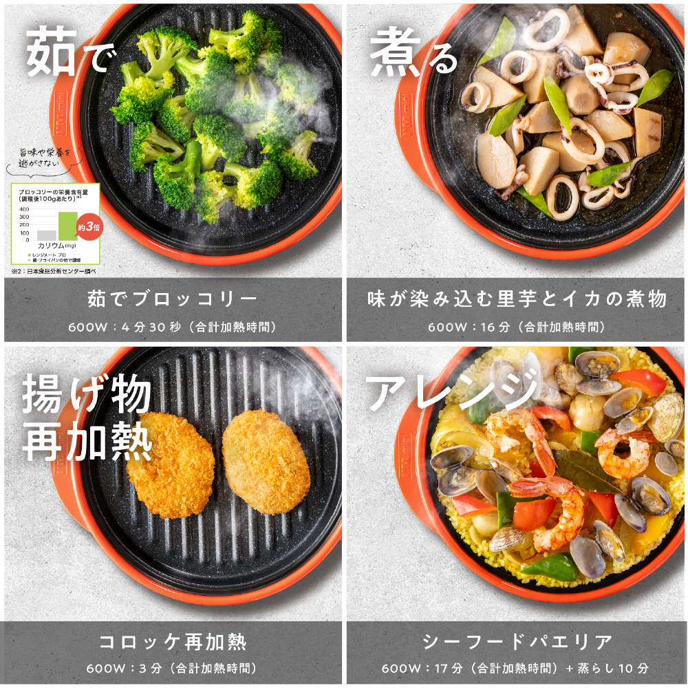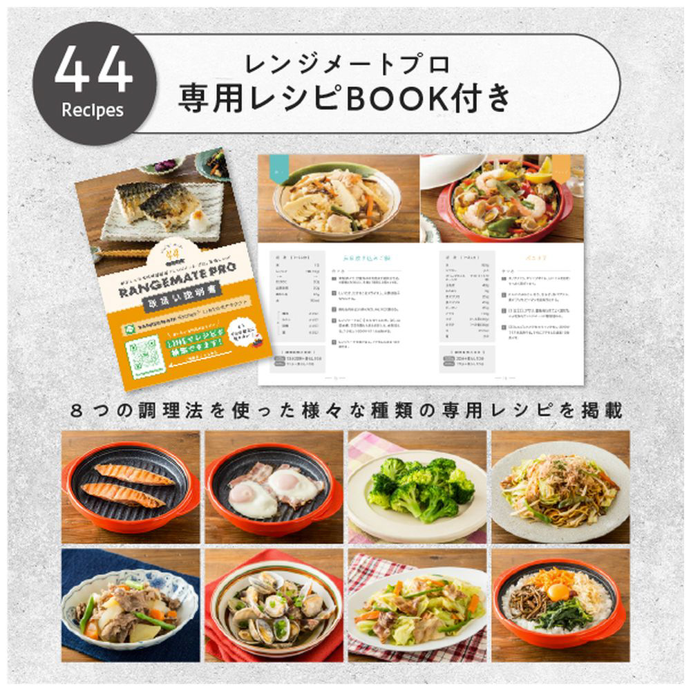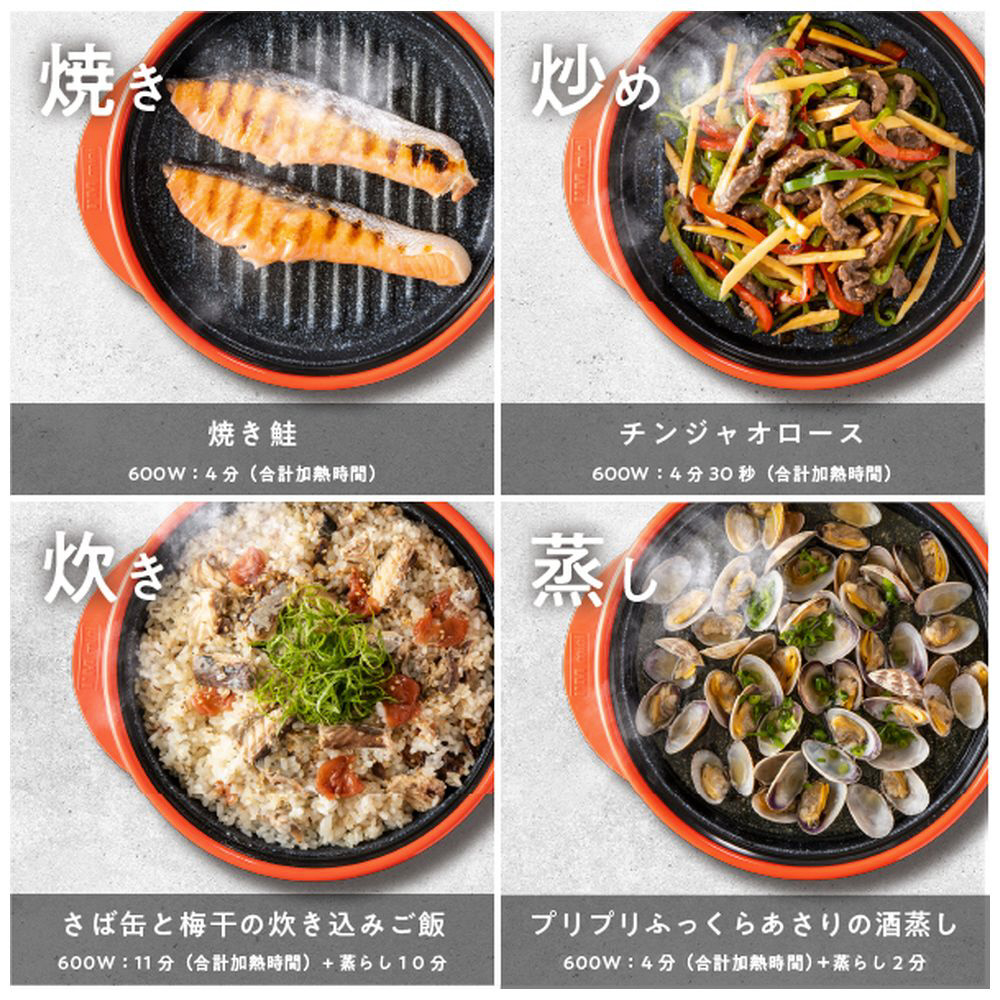 【電子レンジ専用調理器具】【シリーズ累計世界出荷台数600万台突破】電子レンジでまるで直火のような焼き目がつく!メーカー独自開発の遠赤外線発熱体により、外はパリッと、中はジューシーに仕上がります。炒める・焼く・煮る・蒸す・炊く・茹でる・再加熱・アレンジと、これ1台で本格的な8役の調理が可能。専用レシピブック(44品付き)で、毎日の献立も簡単・手軽に。