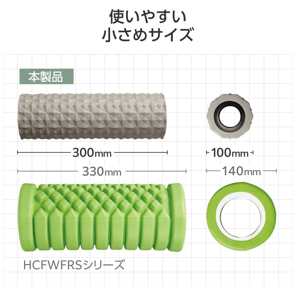 直径約10cm×長さ約30cmの小さめサイズ。低めだから安心して使える、お尻の筋肉のコリほぐしにぴったりのミニフォームローラーです。