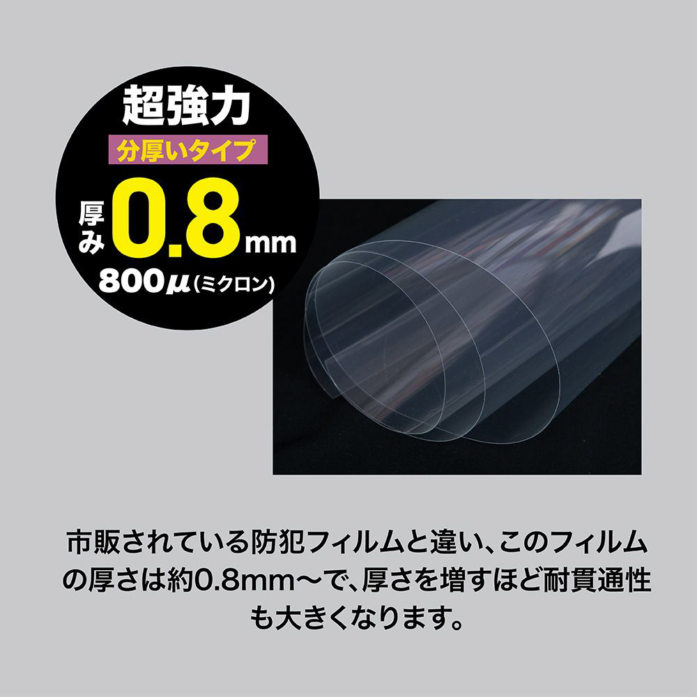 窓ガラス用防犯フィルム厚み0.8mmレギュラー クリア M18-23
