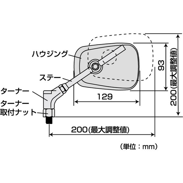 | 商品名 | NA-007 バイク用ミラー エーゼット3ミラーEX ブラック |