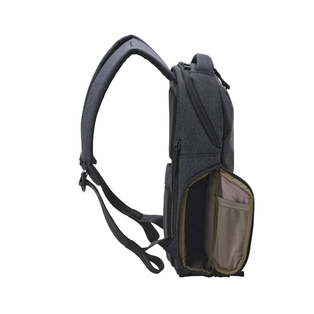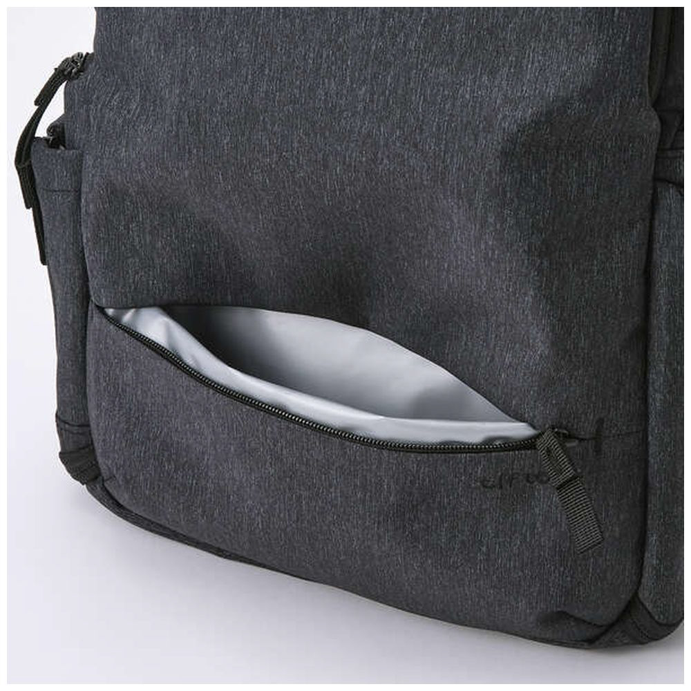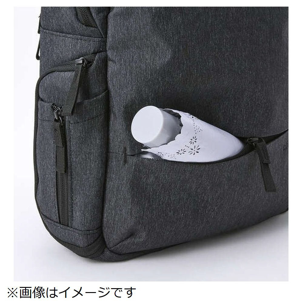 左側にあるサイドポケットは、折り畳み傘やペットボトルの収納が可能。使用しないときはファスナーを閉じることでポケットを目立ちにくくできます。