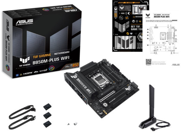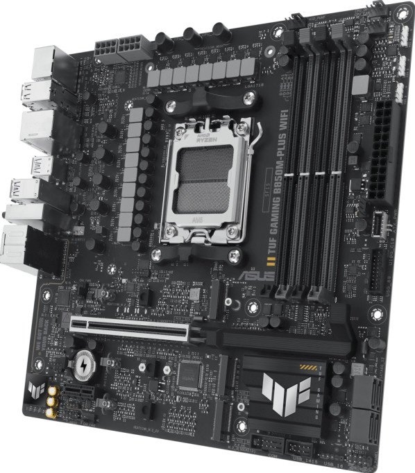 ASUS TUF GAMING B850M-PLUS WIFIは、最新のAMD Ryzenプロセッサの要素をすべて備え、ゲーム向けの機能と確かな耐久性を組み合わせた製品です。軍用グレードのコンポーネント、強化された電源ソリューション、包括的な冷却システムを採用しており、安定した性能で長時間のプレイに耐えられるパフォーマンスを提供します。