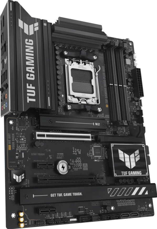 ASUS TUF GAMING B850-PLUS WIFIは、最新のAMD Ryzenプロセッサの要素をすべて備え、ゲーム向けの機能と確かな耐久性を組み合わせた製品です。軍用グレードのコンポーネント、強化された電源ソリューション、包括的な冷却システムを採用しており、安定した性能で長時間のプレイに耐えられるパフォーマンスを提供します。