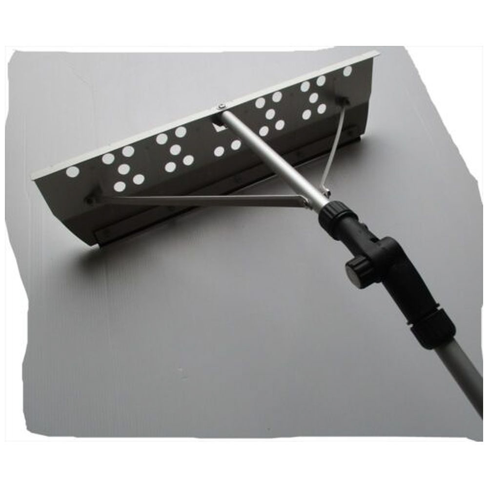 ●ひさしや屋根に上らず、雪落とし作業が出来ます。●角度は2段調節(30度・水平)ができ、61cm幅のヘッドで作業性もよく、ひさしの積雪も素早く簡単に落とせます。●ひさしや屋根等への衝撃に優しいクッションゴム付。●サイズ:約幅62cm×218~340cm●重量:約1630g●材質:ヘッド/アルミ、ハンドル/アルミ(2段伸縮式)