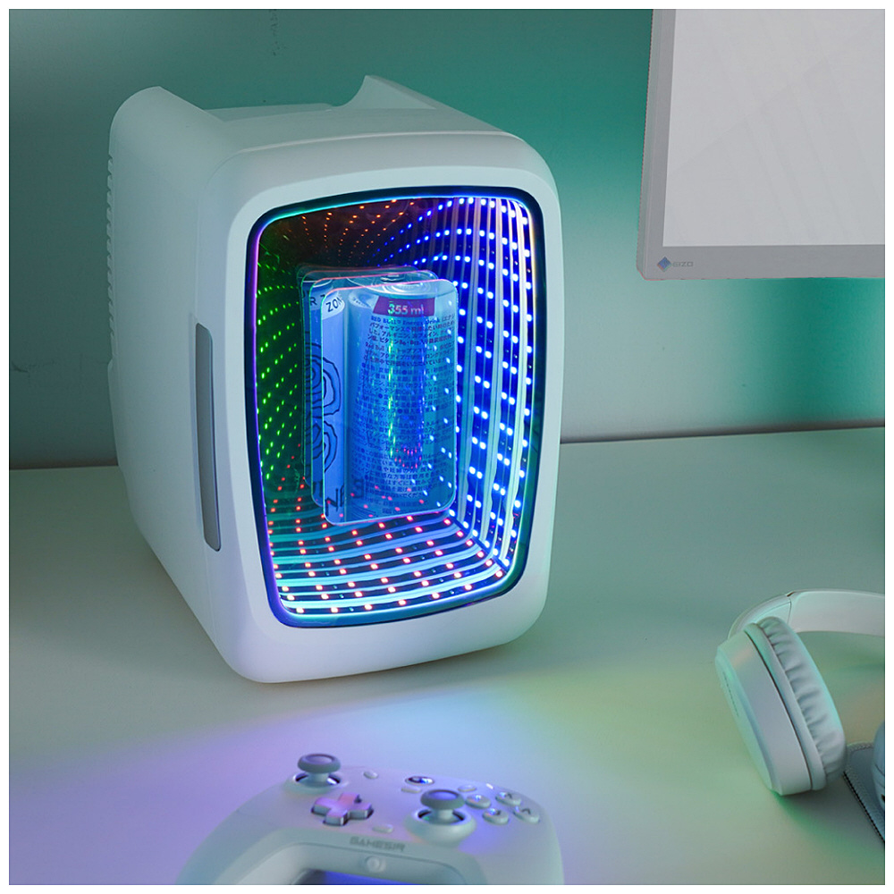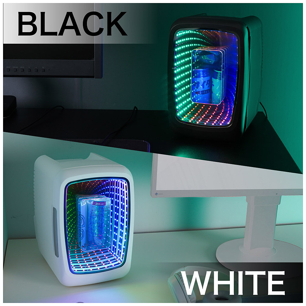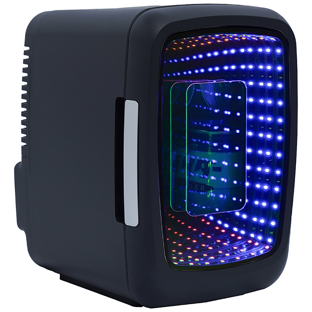 インフィニティミラーが前面にある小型の卓上4L冷蔵庫