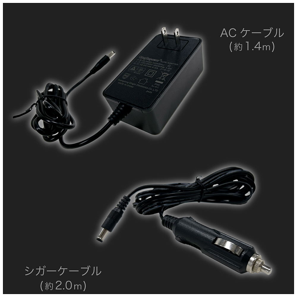 長さ約2mのシガーケーブルも付属しており、車でも使える多機能性がポイント。