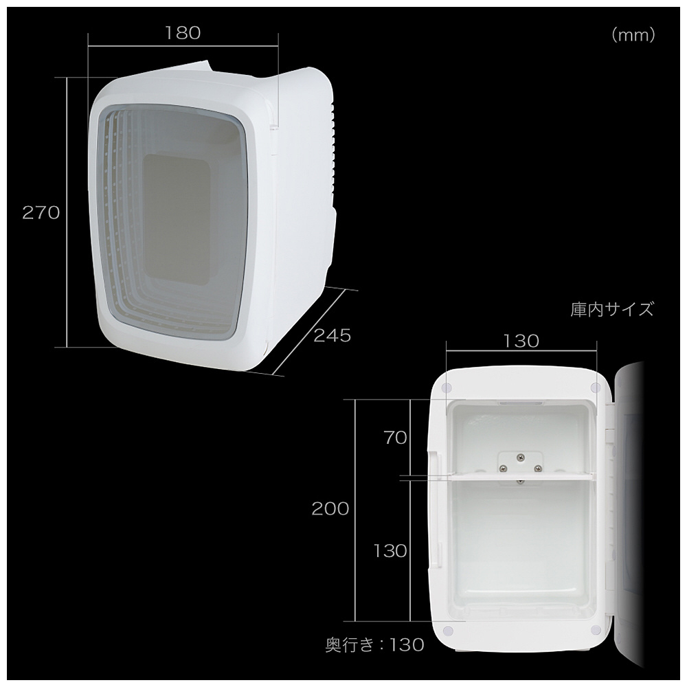 | 仕様1 | ●サイズ 幅180×奥行245×高さ270(mm) ●庫内サイズ 幅130×奥行130×高さ200(mm) ●重量 約1.6kg ●電源 AC100V 50/60Hz またはDC12V ●消費電力 約40W ●庫内温度 平均約7℃※設置場所の推奨温度:周囲温度約25℃ ●庫内容量 4L ●冷却方式 ペルチェ素子電子冷却方式 ●モード 2種類(保冷のみ、保冷+ライト) |
