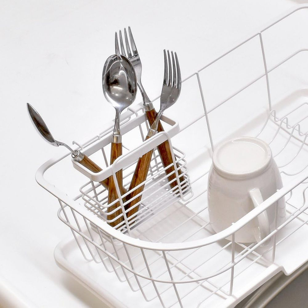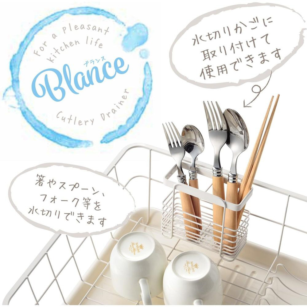 水切りかご内でバラつきがちな箸やカトラリー収納に。かごに引っ掛けるだけで箸やカトラリーの定位置ができます。縦型に置けるので水はけも良くスッキリ片付きます。中に仕切り付で小物が倒れてくるのを防げます。