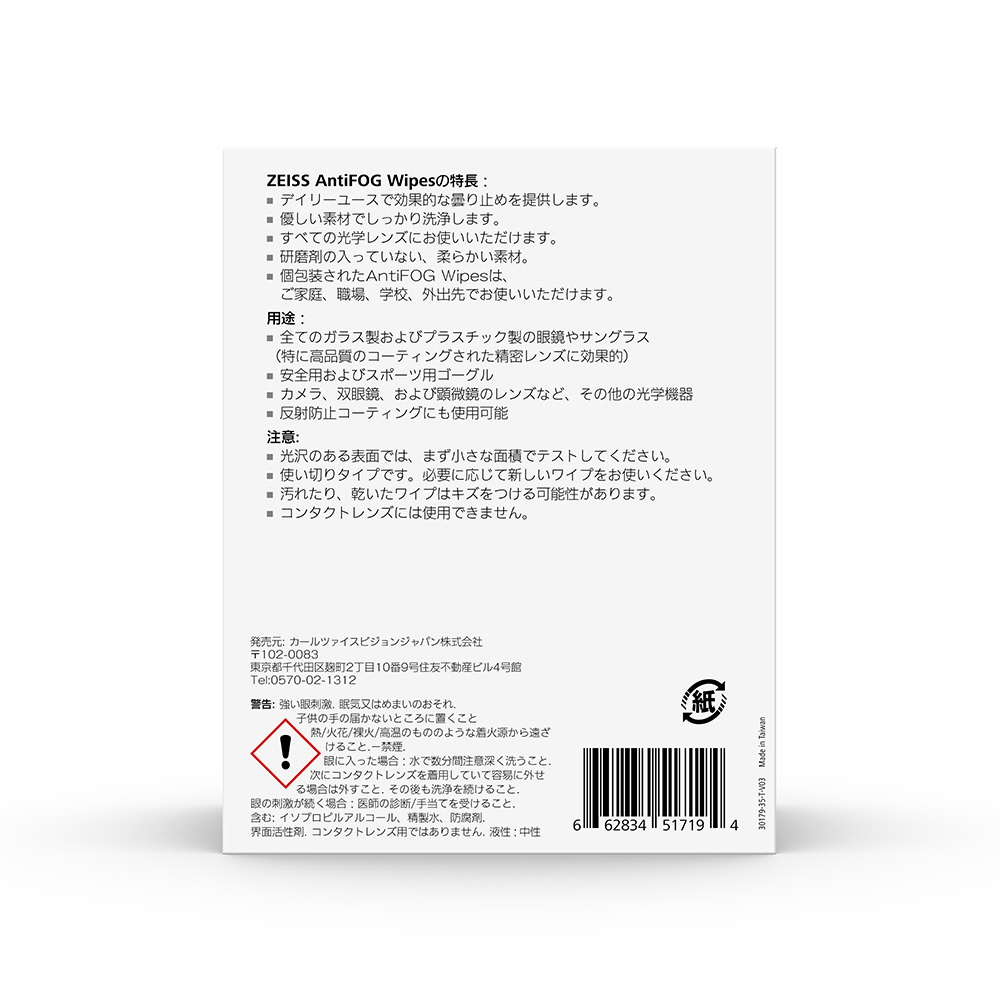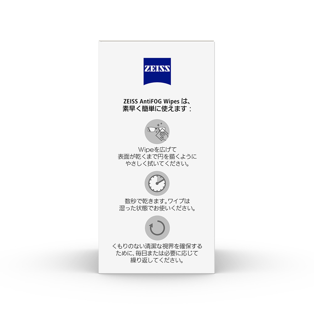 ZEISS 曇り止めワイプは、メガネ、サングラス、ゴーグル、カメラレンズの曇りを防止し、汚れを優しくすっきり落とすために特別開発されました。