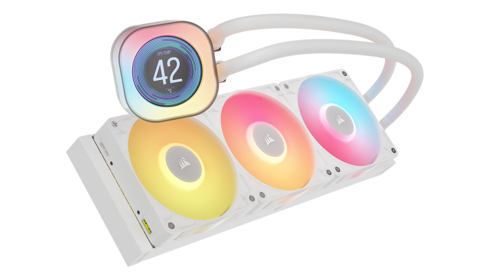 簡単かつスマートにPCを構築可能な「iCUE LINK」に対応。LCDディスプレイを備え、静音性と冷却効率に優れた水冷一体型CPUクーラー