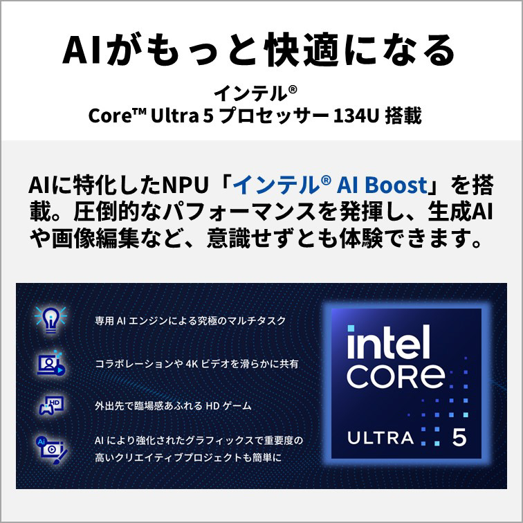 | NPU(AIプロセッサ) | インテル AI Boost |