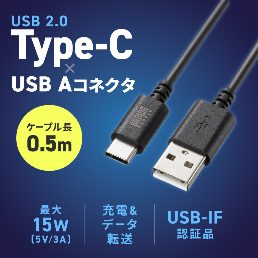 | 商品名 | USB-A ⇔ USB-Cケーブル [充電 /転送 /0.5m /USB2.0] ブラック KU-CA05BK |