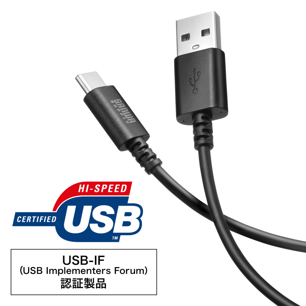 USB 2.0 Type-C-Aケーブル。USB-IF認証品。