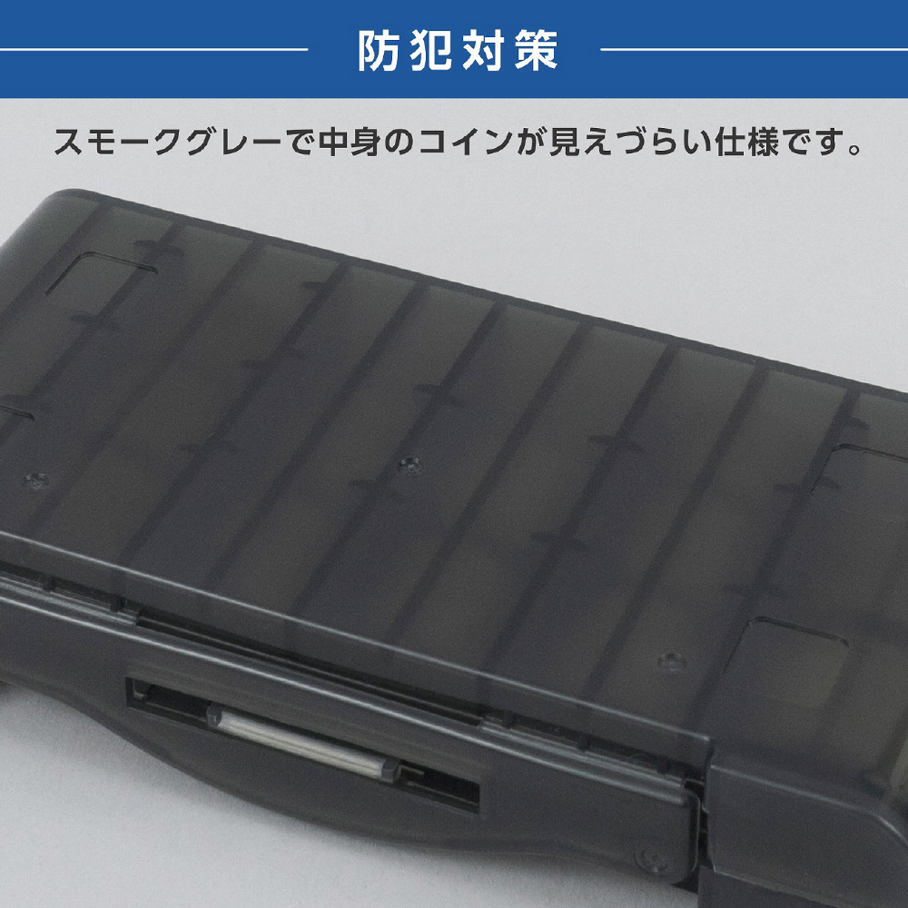 フタ側にも仕切りを付けることで、持ち運び時に生じる硬貨の飛散を防止。