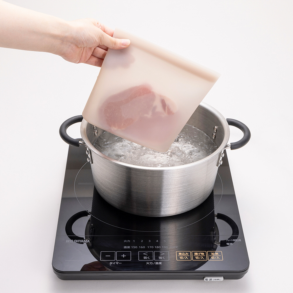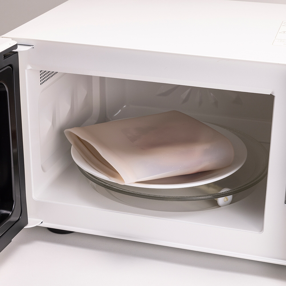 食材の保存のほか、調理にも使えるシリコーン保存バッグ。電子レンジ・オーブン、湯煎、冷蔵・冷凍に対応し、調理の幅が広がります。