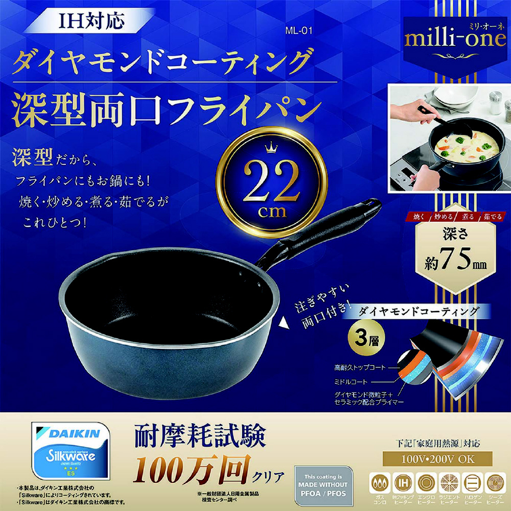 | 商品名 | milli−one IH対応 深型両口フライパン22cm ML-01 [IH対応] |