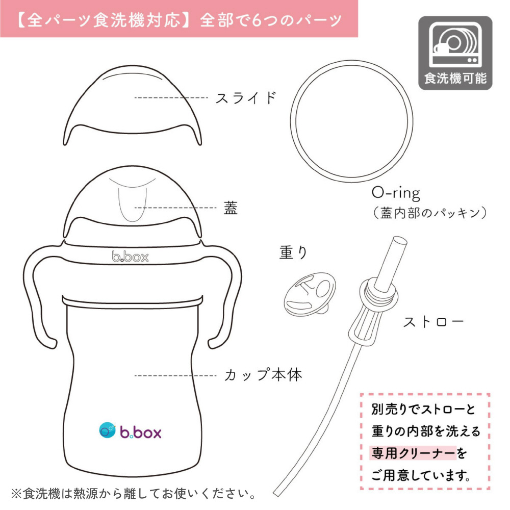 「漏れにくい」ストローマグで人気のビーボックスのシッピーカップです。