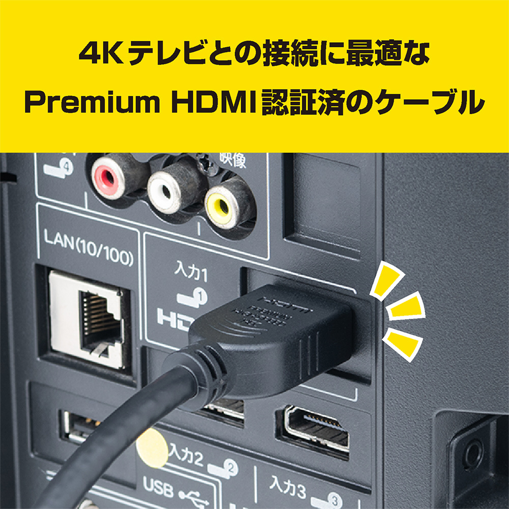 4Kテレビとの接続に最適なPremium HDMIケーブル