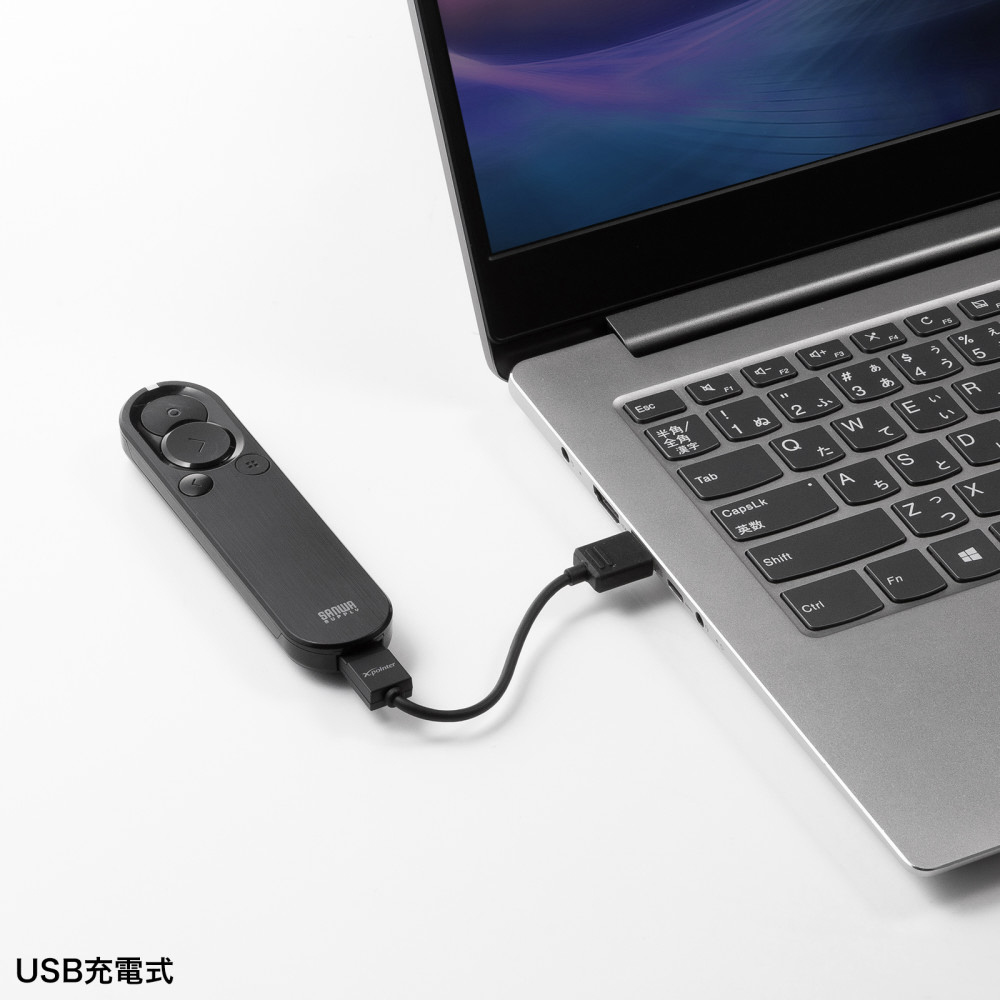 ●USB充電式で、付属のケーブルを使って繰り返し充電でき、電池交換は不要です。