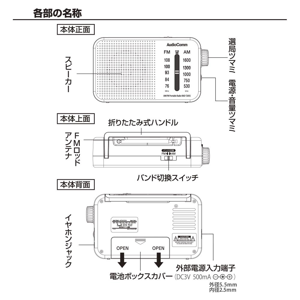 AM/FMポータブルラジオ AudioComm ブラック RAD-T205S [ワイドFM対応 /AM/FM]