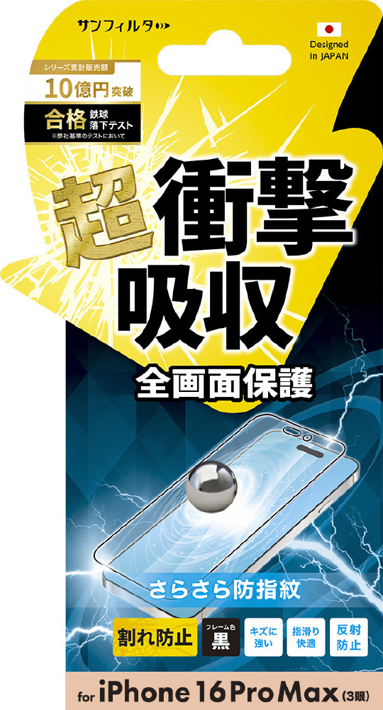 iPhone 16 Pro Max 衝撃吸収フィルム(フレーム) さらさら防指紋 i38PASBF