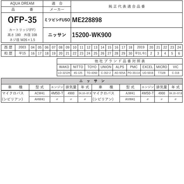 ■純正共通品番:【ミツビシFUSO】ME228898【ニッサン】15200-WK900
