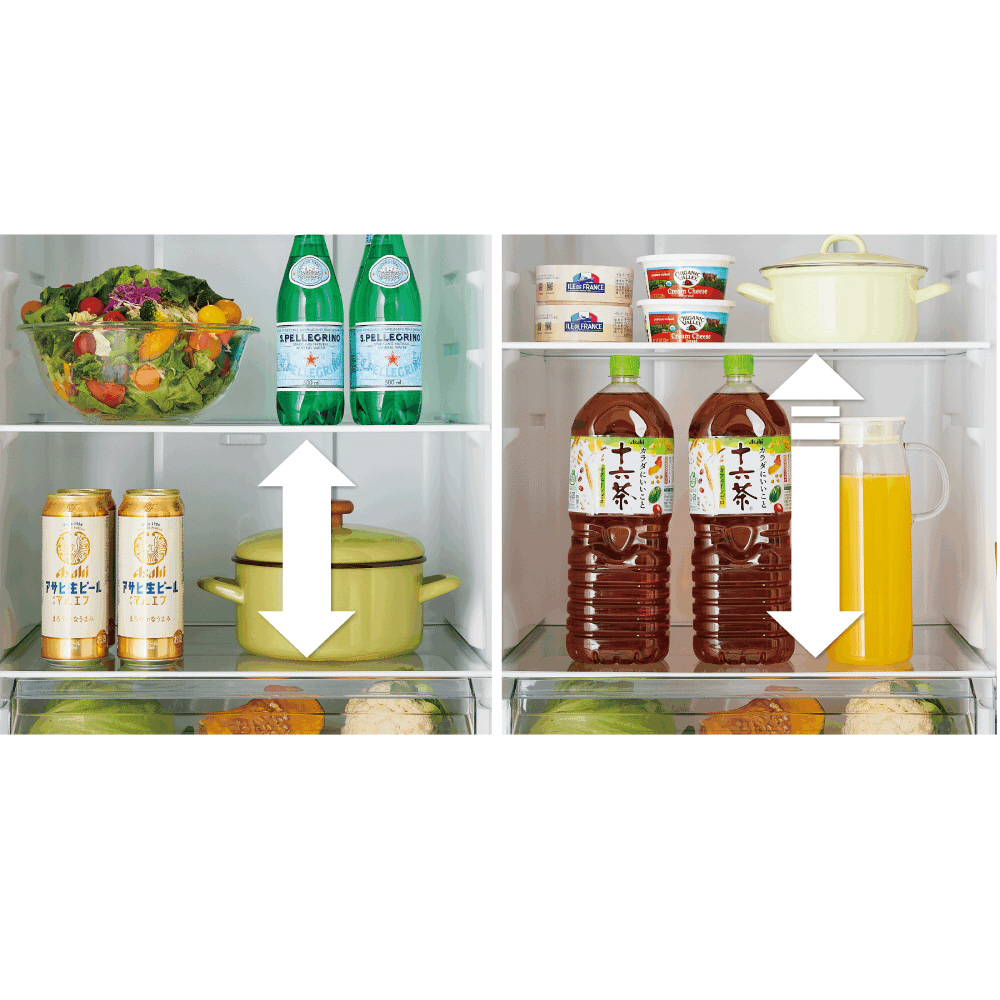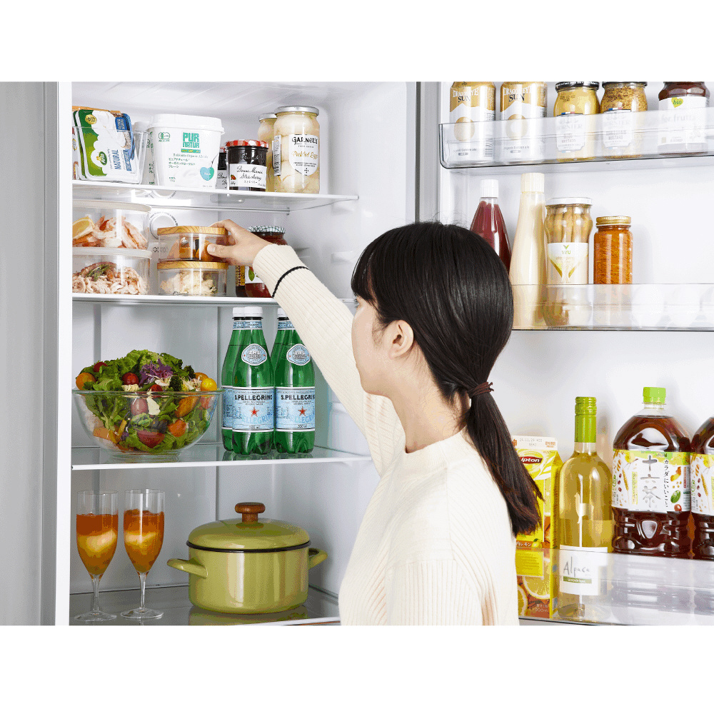 奥行が抑えられた薄型設計で、冷蔵庫の奥に収納した食品も取り出しやすい。
