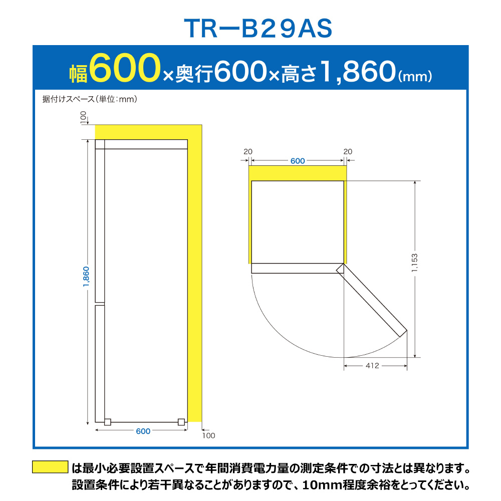 | 商品名 | 冷蔵庫 シルバー TR-B29AS [60cm /293L /2ドア /右開きタイプ /2025年]【基本設置料金セット】 |