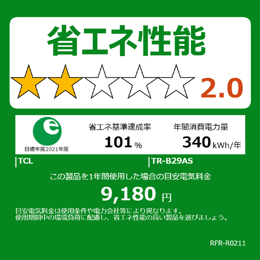 | 省エネ性能(目標年度2021) | ★★☆☆☆ 2.0 |