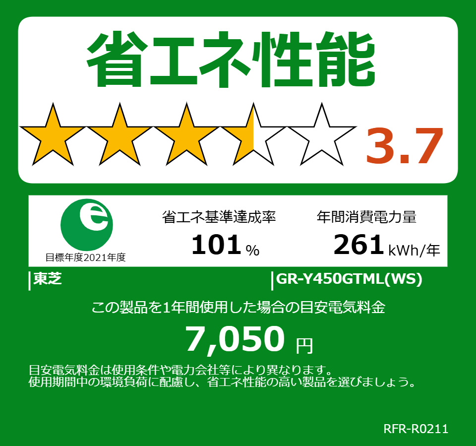 冷蔵庫 VEGETA(ベジータ)GTMシリーズ エクリュホワイト GR-Y450GTML-WS [幅60cm /452L /5ドア /左開きタイプ] 【基本設置料金セット】 【買い替え5000pt】
