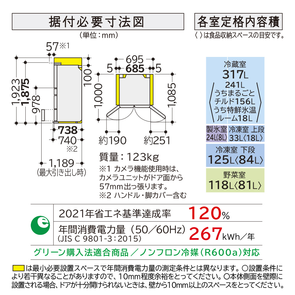 | 年間消費電力量 | 267kWh/年(JIS C 9801-3:2015) |