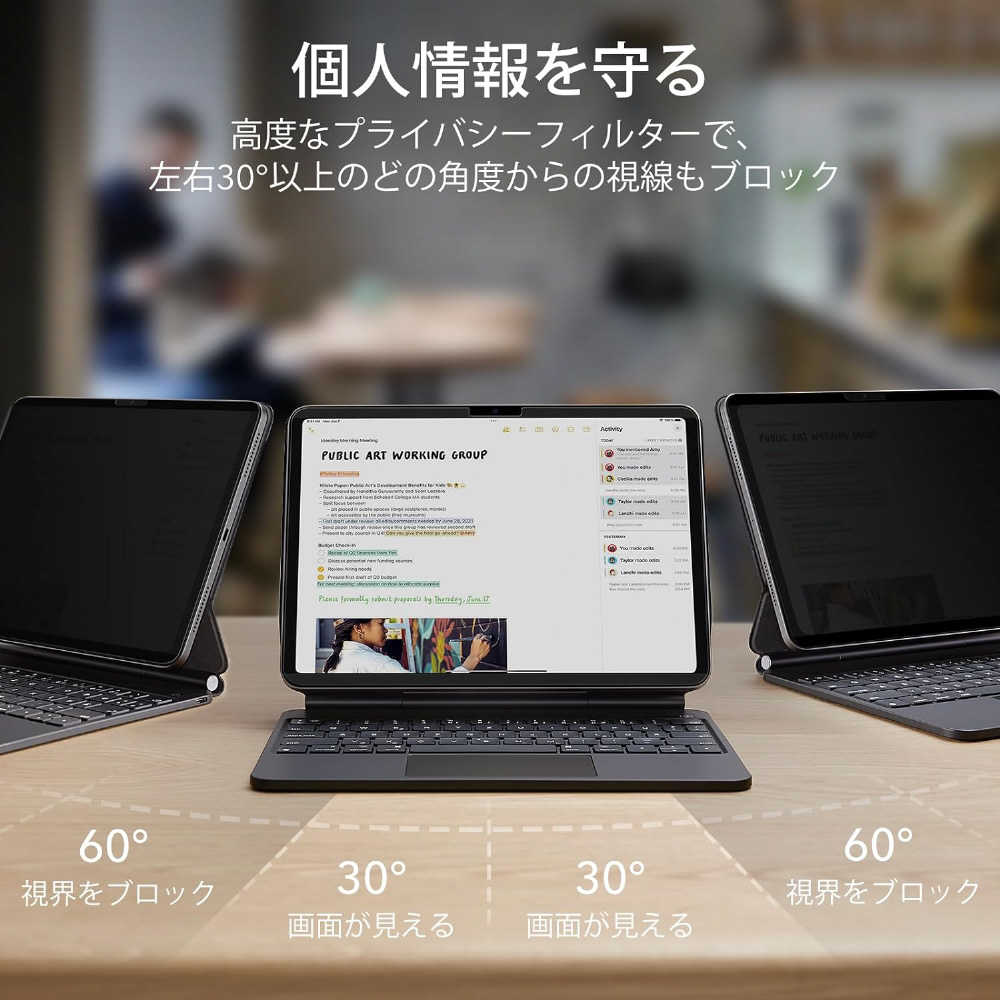 13インチiPad Pro(M5/M4)用 着脱可能プライバシーマグネットフィルム (1枚入り) ESR Magnetic Privacy Screen Protector iPad Pro 13 M4