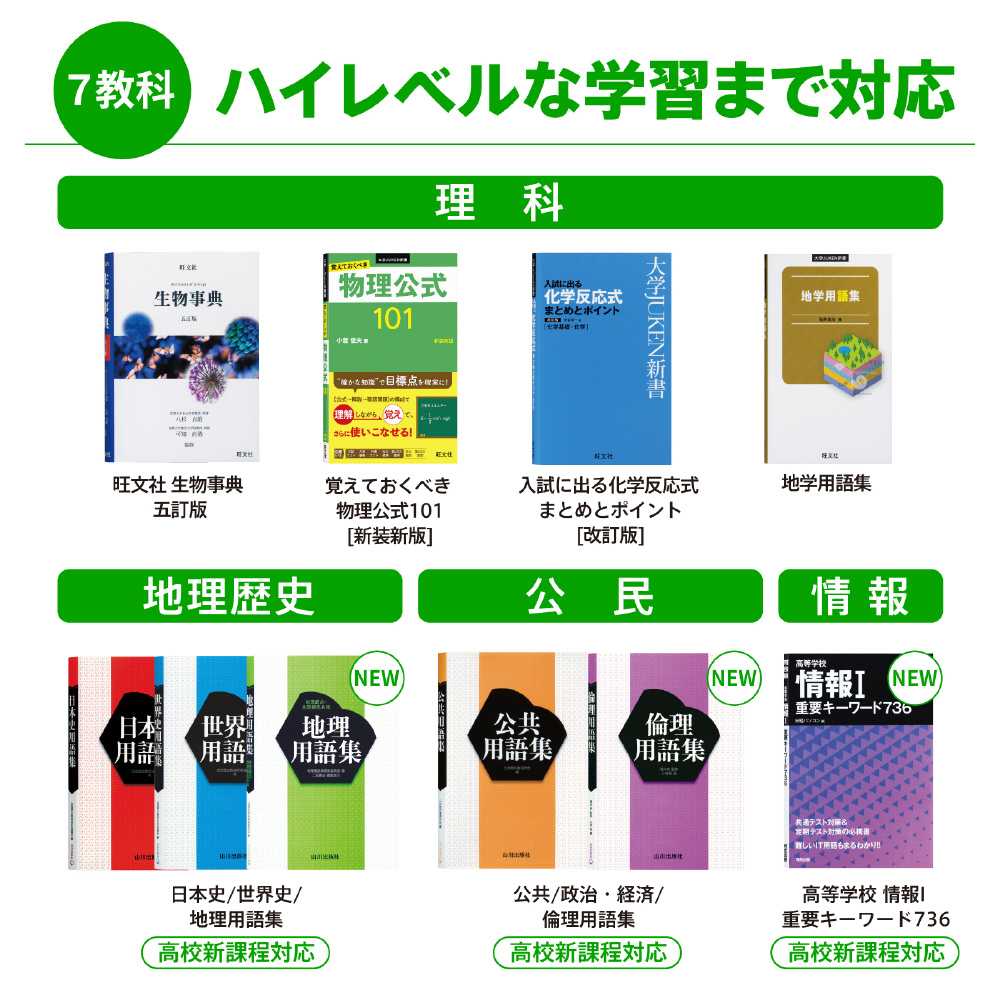 さらなる高みを目指す高校生へ。ハイレベルな英語学習、難関大学合格に向けた高校学習をサポート。 読む、聞く、書く、話すの4技能をバランスよく学習できる英語系コンテンツをはじめ、用語集、参考書、問題集などを幅広く収録。授業の予習・復習から受験まで活用できます。