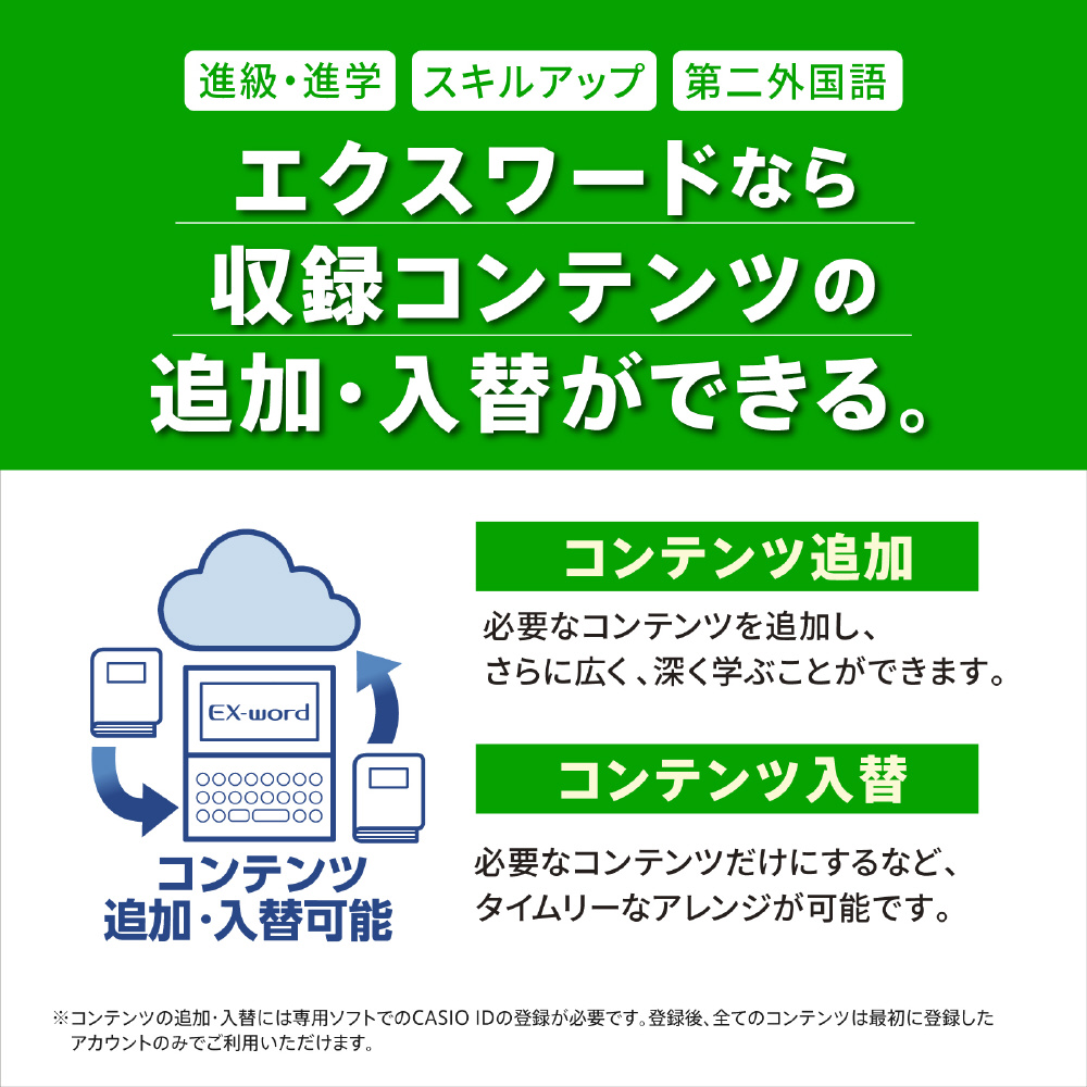 アフターコンテンツは、電子辞書ご購入後にお客様ご自身で電子辞書本体にダウンロードをしてご利用ください。