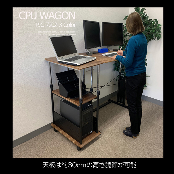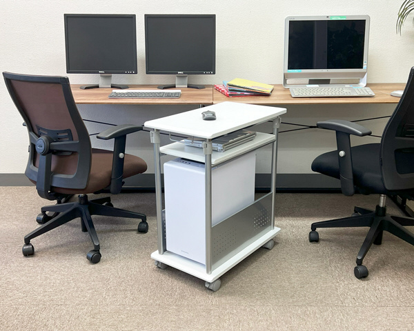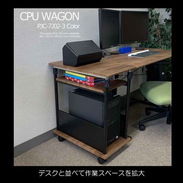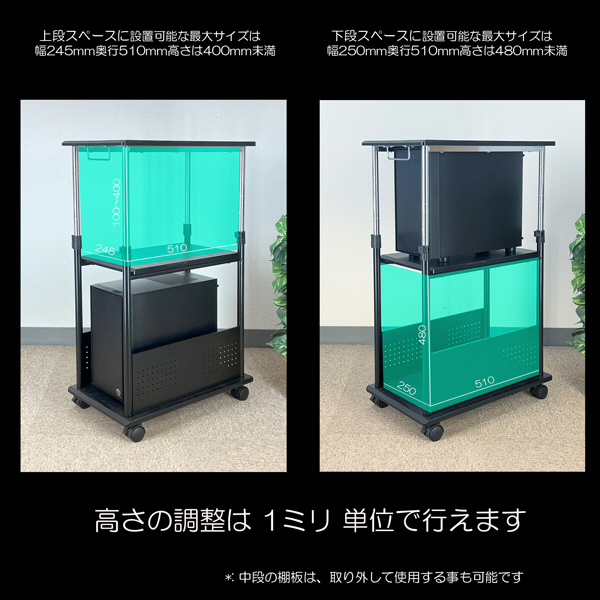 1ミリ単位で高さ調節可能な、2段式のパソコンワゴン・デスクワゴンです。
