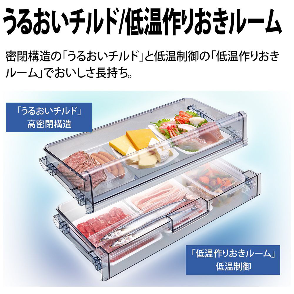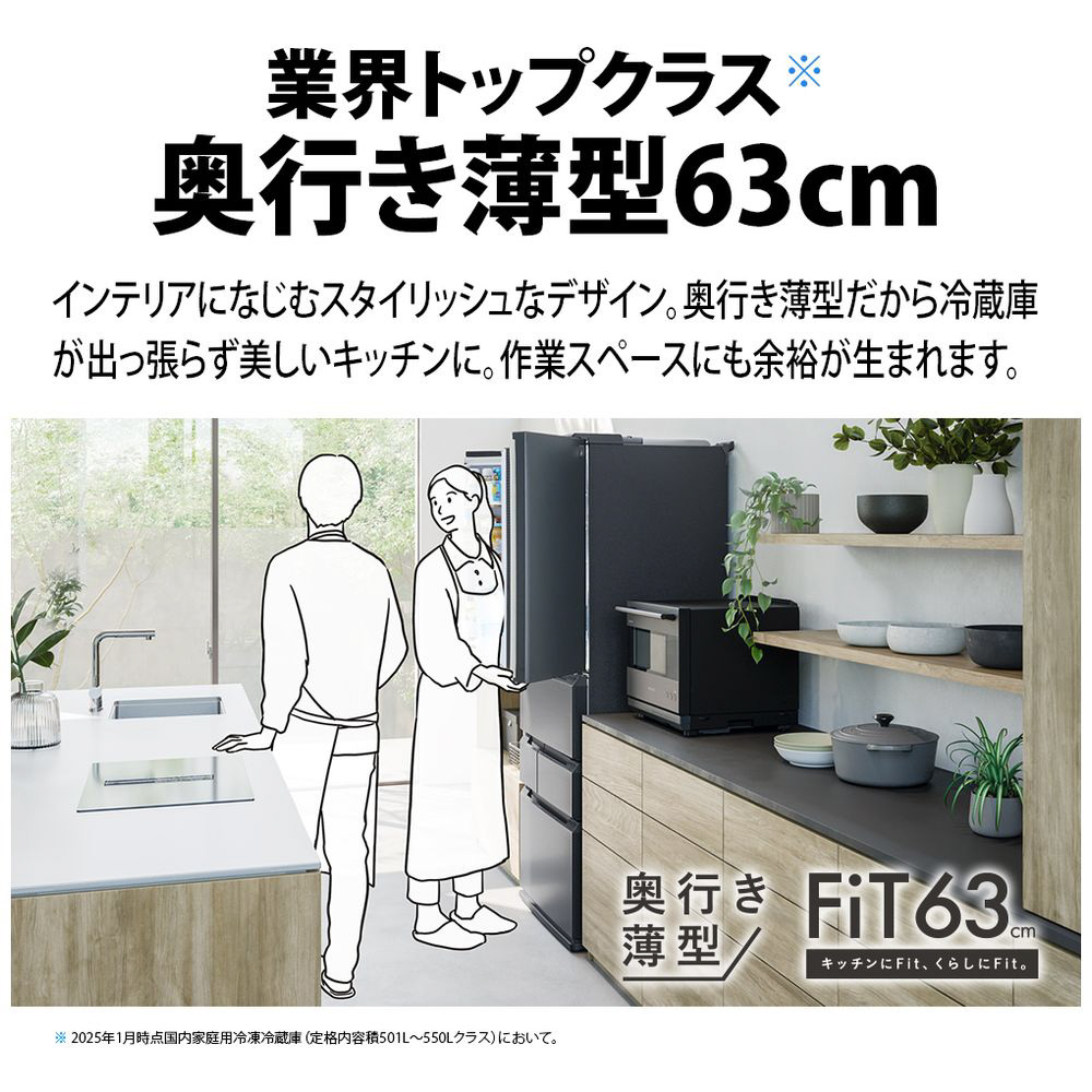 奥行き薄型デザインだから限られたスペースも有効に使える 。横幅ワイドで庫内が見渡しやすく取り出しやすい。