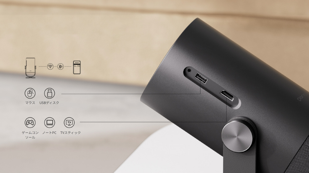 天井投影も可能なバッテリー搭載型ポータブルプロジェクター