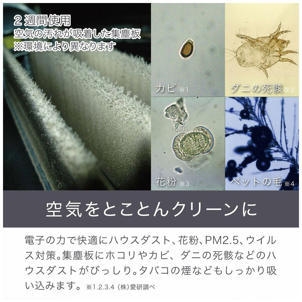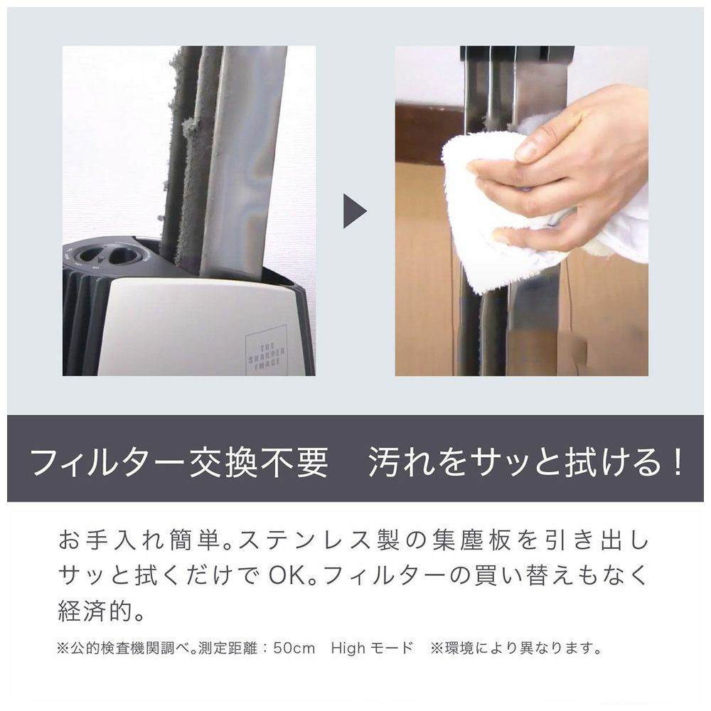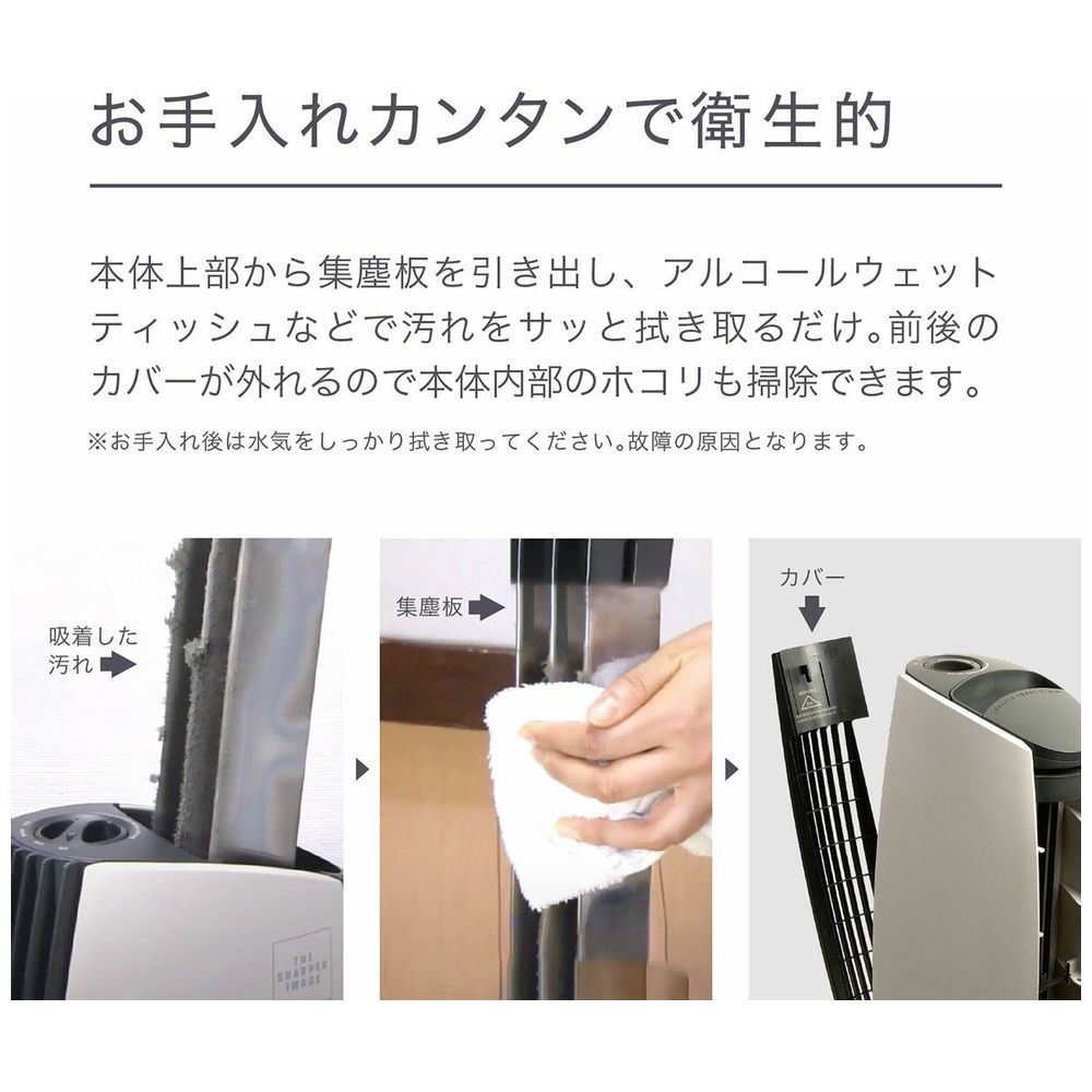 ホコリが吸着した集塵板をウェットティッシュ等で拭き取れるので簡単です。本体の前後のカバーも外せるのでハンディモップ等を使って掃除しクリーンに。面倒な複数のフィルターのお手入れが不要です。