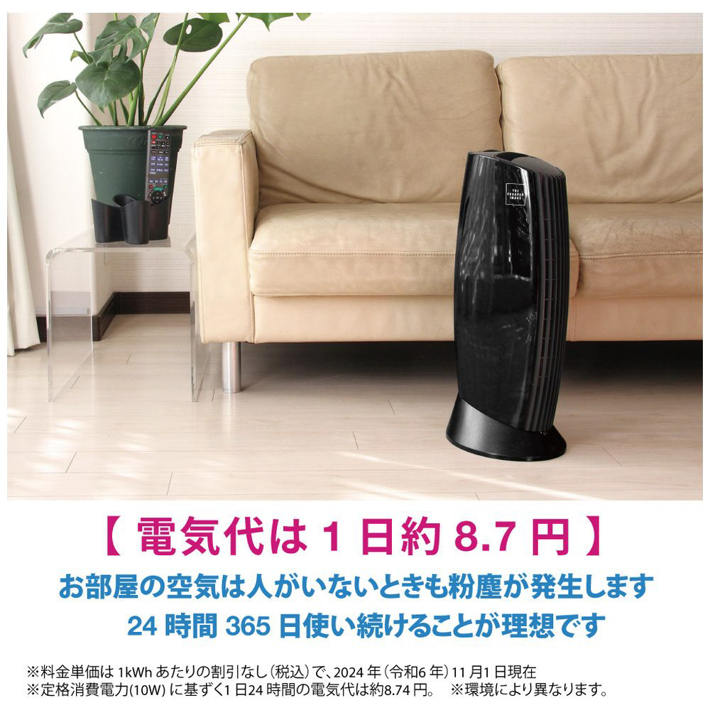 24時間稼働(強モード時)で電気代は約6.5円、1年で2372円と経済的です。