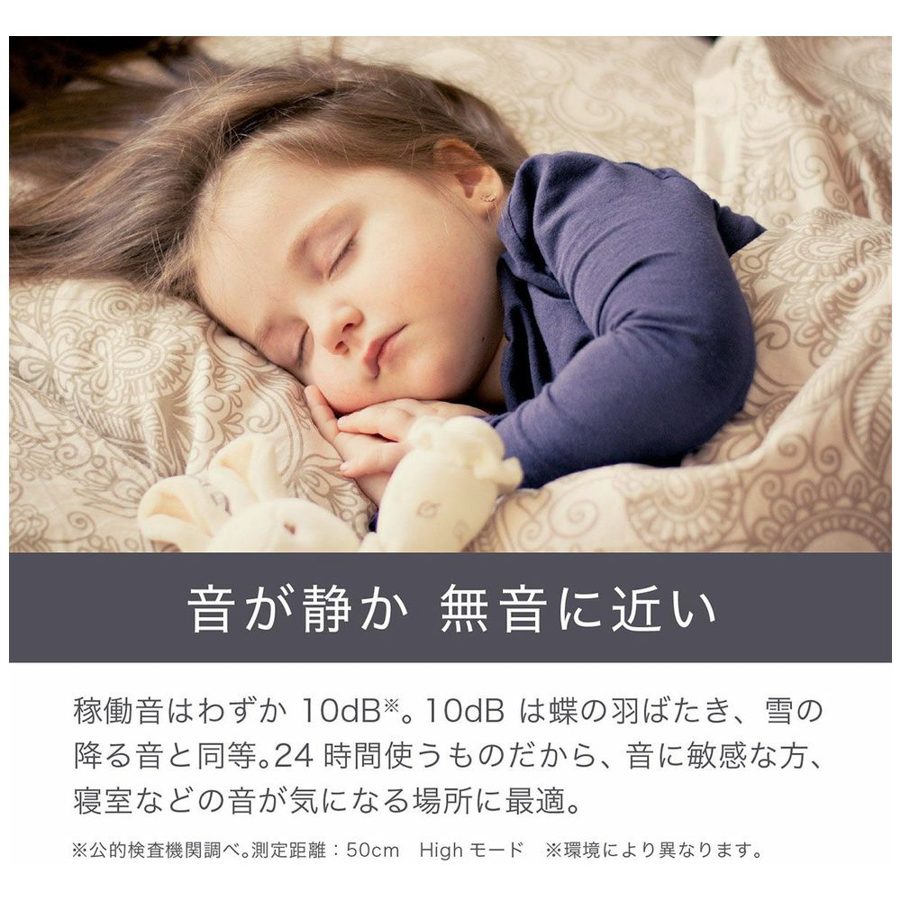 耳を澄ましてください。USA特許「Zenion Effect」による電子的空気循環により、強モードで10dBと稼働音がほとんどありません。だから24時間稼働が実現するのです。
