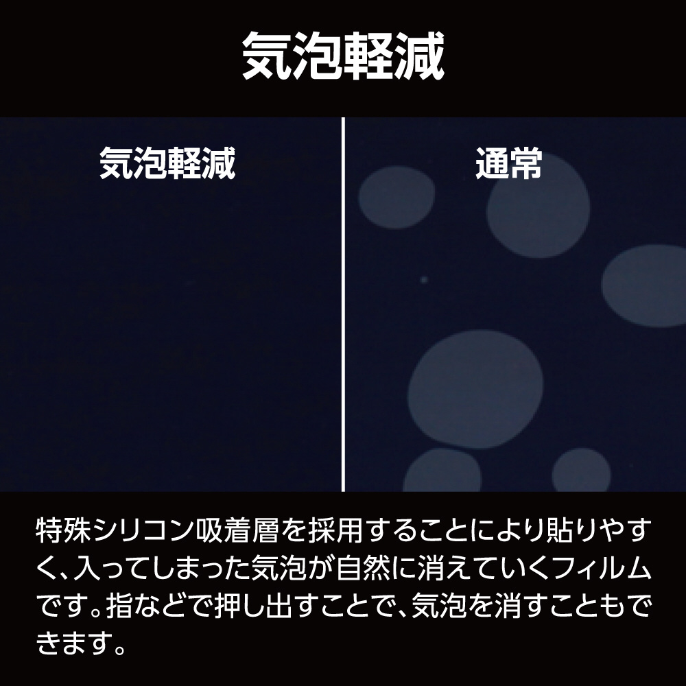 入った気泡が自然に消える、バブルレス特殊シリコン吸着層を採用。