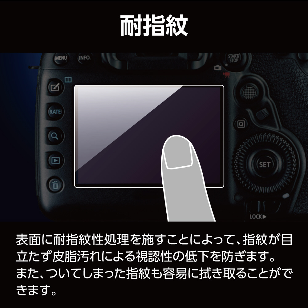表面に耐指紋性処理を施すことによって、指紋が目立たず皮脂汚れによる視認性の低下を防ぎます。