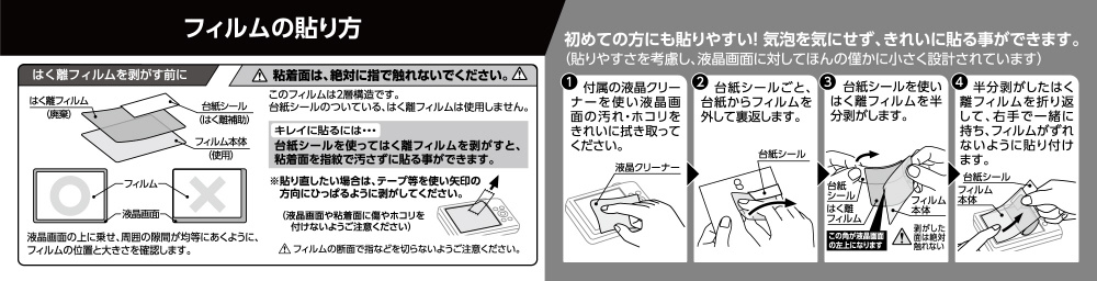 ・このフィルムは2層構造です。台紙シールのついている、はく離フィルムは使用しません。